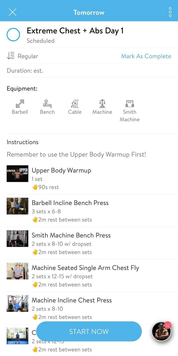 Workout app with detailed sets, reps, rest times, instructional videos, and coaching cues — so you never miss a beat